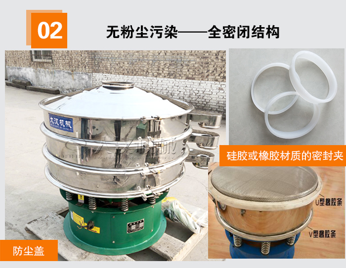 在篩分粉狀物料時,不少用戶抱怨說揚(yáng)塵大,在購買時用戶需要考慮到這一點(diǎn),所以增加了選購的難度。大漢旋振篩設(shè)備采用全密閉結(jié)構(gòu),外加防塵蓋避免在粉狀物料篩分過程中出現(xiàn)粉塵飛揚(yáng)現(xiàn)象,我們廠家的旋振篩采用硅膠或橡膠材質(zhì)的密封件對篩機(jī)進(jìn)行密封處理,選用德國進(jìn)口膠水進(jìn)行加固,可以很大程度上降低粉塵污染。
