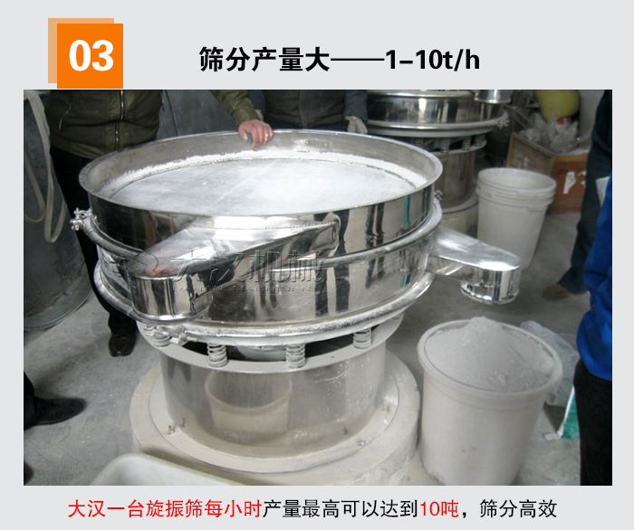 篩分粉類物料時,一般對產(chǎn)量也有所要求,但是考慮到粉狀物料的篩分難度,選擇普通振動篩可能會造成產(chǎn)能低下等問題,而旋振篩采用法蘭電機(jī),動力大,可以增加粉類物料的篩分產(chǎn)量,通過大漢廠家反復(fù)在不同的場合對不同物料進(jìn)行測試,從而得出旋振篩的平均產(chǎn)量,能夠完全符合粉狀物料的用戶篩分要求,大漢一臺旋振篩每小時產(chǎn)量高可以達(dá)到10噸,篩分高效。