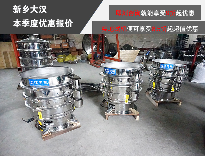 以上是對食品旋振篩多少錢的介紹,有關(guān)食品旋振篩詳細報價單,您可以隨時咨詢新鄉(xiāng)大漢姐夫,廠家會有專業(yè)銷售經(jīng)理與您對接,提供給您全面詳細的報價單,并指導設(shè)備選型工作。