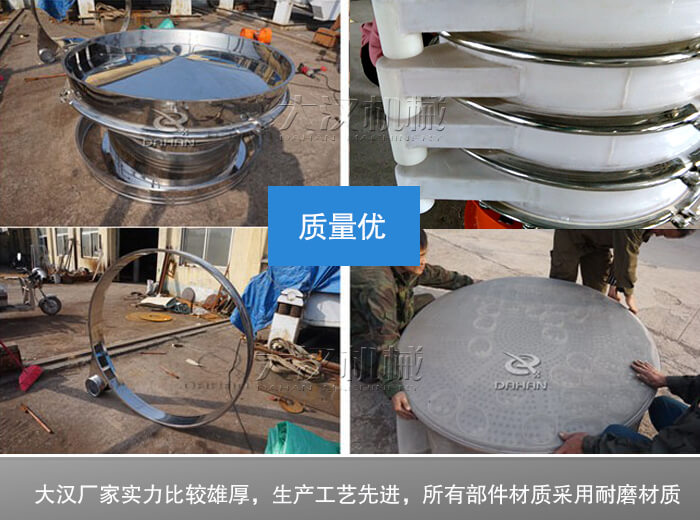 大漢廠家實力比較雄厚,生產(chǎn)設備的工藝比較先進,生產(chǎn)這款化工振動篩全部采用了先進的工藝和技術,使其生產(chǎn)出來的設備質(zhì)量非常有保證,并且所有部件材質(zhì)采用的也是耐磨材質(zhì)的,可以說是目前市場上質(zhì)量較好的一款振動篩設備。