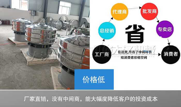 大漢化工振動篩價格是目前市場上同行業(yè)內(nèi)比較低的,原因就在于我們采取的是薄利多銷營銷策略,制定的設備價格市場價和出廠價是相同的,廠家直銷,沒有中間商,能大幅度降低客戶的投資成本。