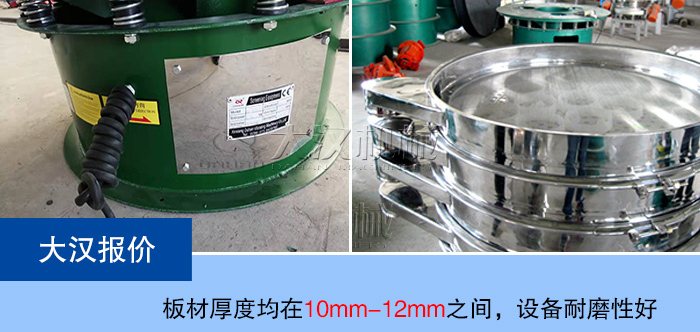 大漢廠家生產(chǎn)的雙層旋振篩采用優(yōu)質(zhì)碳鋼或不銹鋼材質(zhì),板材厚度均在10mm-12mm之間,設(shè)備耐磨性好,使用過程中不會因設(shè)備質(zhì)量問題而造成設(shè)備停機問題,可以在很大程度上降低設(shè)備的維護費用。