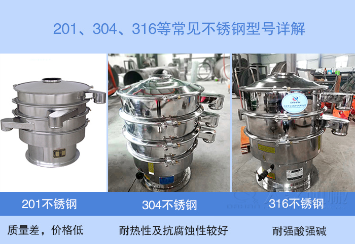不銹鋼振動(dòng)篩材質(zhì)主要由201、304及316不銹鋼等三種材質(zhì):