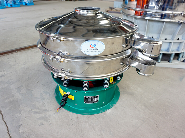 小型旋振篩是一種高精度細(xì)粉篩分機(jī)械,工作原理是由直立式電機(jī)作激振源,電機(jī)上、下兩端安裝有偏心重錘,將電機(jī)的旋轉(zhuǎn)運(yùn)動(dòng)轉(zhuǎn)變?yōu)樗?、垂直、傾斜的三次元運(yùn)動(dòng),再把這個(gè)運(yùn)動(dòng)傳遞給篩面。調(diào)節(jié)上、下兩端的相位角,可以改變物料在篩面上的運(yùn)動(dòng)軌跡,由于其振動(dòng)運(yùn)轉(zhuǎn)原理很多企業(yè)也稱之為“三次元振動(dòng)篩分過(guò)濾機(jī)”。