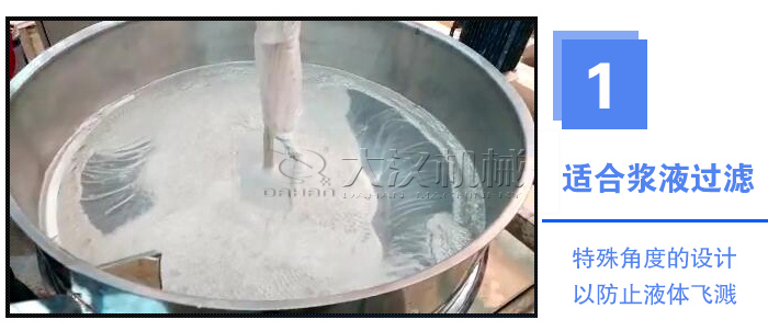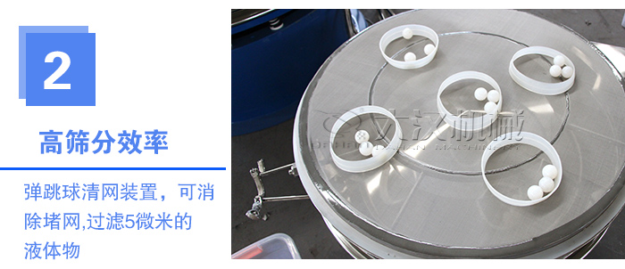 篩網(wǎng)利用率高,篩網(wǎng)下可設(shè)彈跳球清網(wǎng)裝置,可消除堵網(wǎng)現(xiàn)象,加緣式旋振篩可以過濾5微米的液體物料,部件無(wú)死角,易清洗消毒。