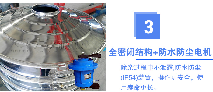 采用全密閉結(jié)構(gòu),可以保證液體物料在除雜過程中不泄露,不影響篩分效率。另外,我們加緣式旋振篩使用的是大功率電機(jī),具有防水防塵(IP54)裝置,操作更安全,使用壽命更長(zhǎng)。