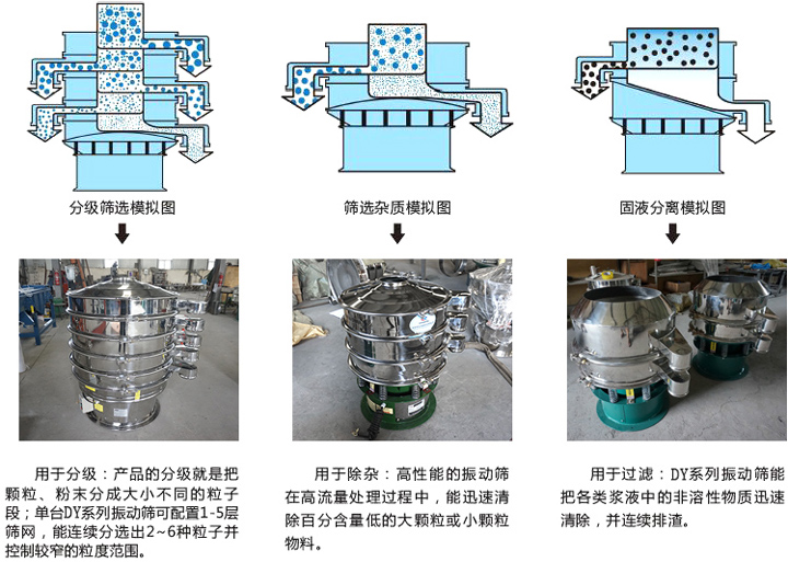 在篩箱的振動作用下,物料在篩面上產(chǎn)生螺旋狀運動。較大的物料被離心力推向篩箱的外側,而較小的物料則逐漸通過篩孔,落入下方的出料口。篩孔的大小可以根據(jù)物料的要求進行選擇,以實現(xiàn)不同粒徑的篩分和分級。